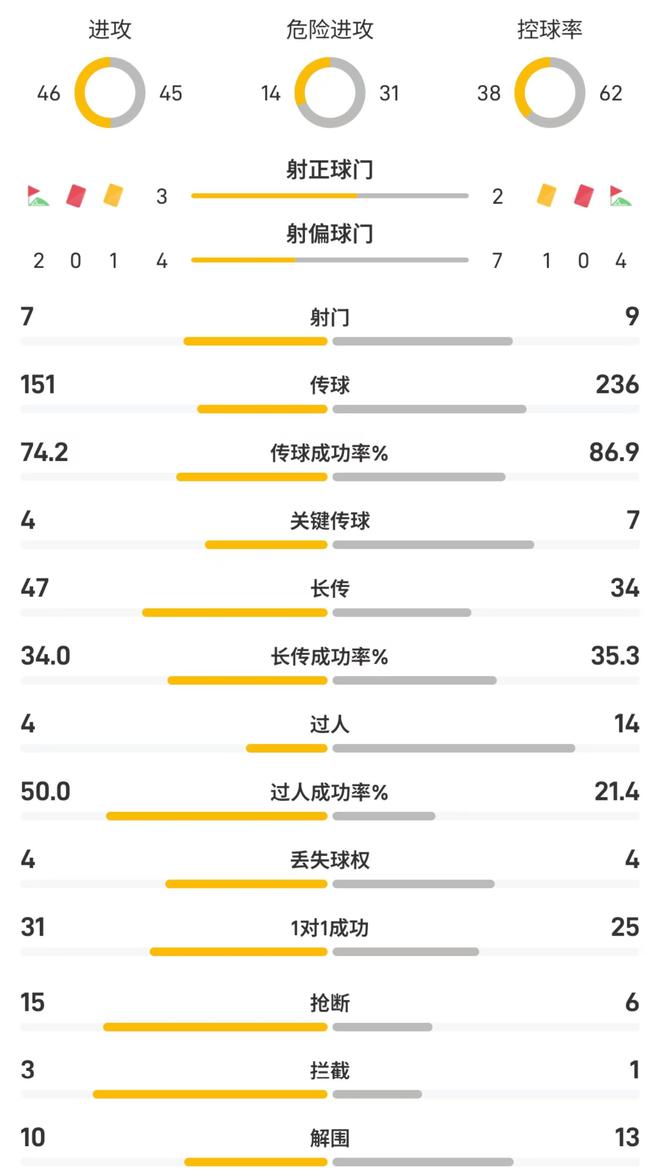 加拉塔萨雷vs红军半场数据:红军控球率62%、射门7-9
